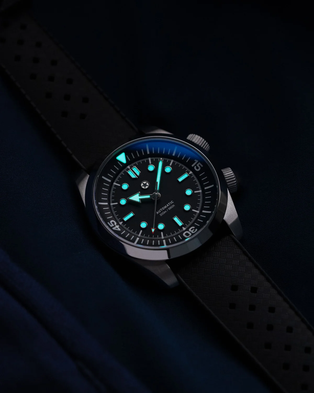 For strap options, buyers can choose between a finely crafted stainless steel bracelet, which enhances the watch’s versatility and dressier potential, or a high-performance FKM rubber strap. The FKM rubber strap is chosen for its durability, comfort, and resistance to the elements, making it an ideal companion for aquatic activities and active lifestyles. This dual-option approach further emphasizes the watch’s adaptability across a spectrum of environments and user preferences.