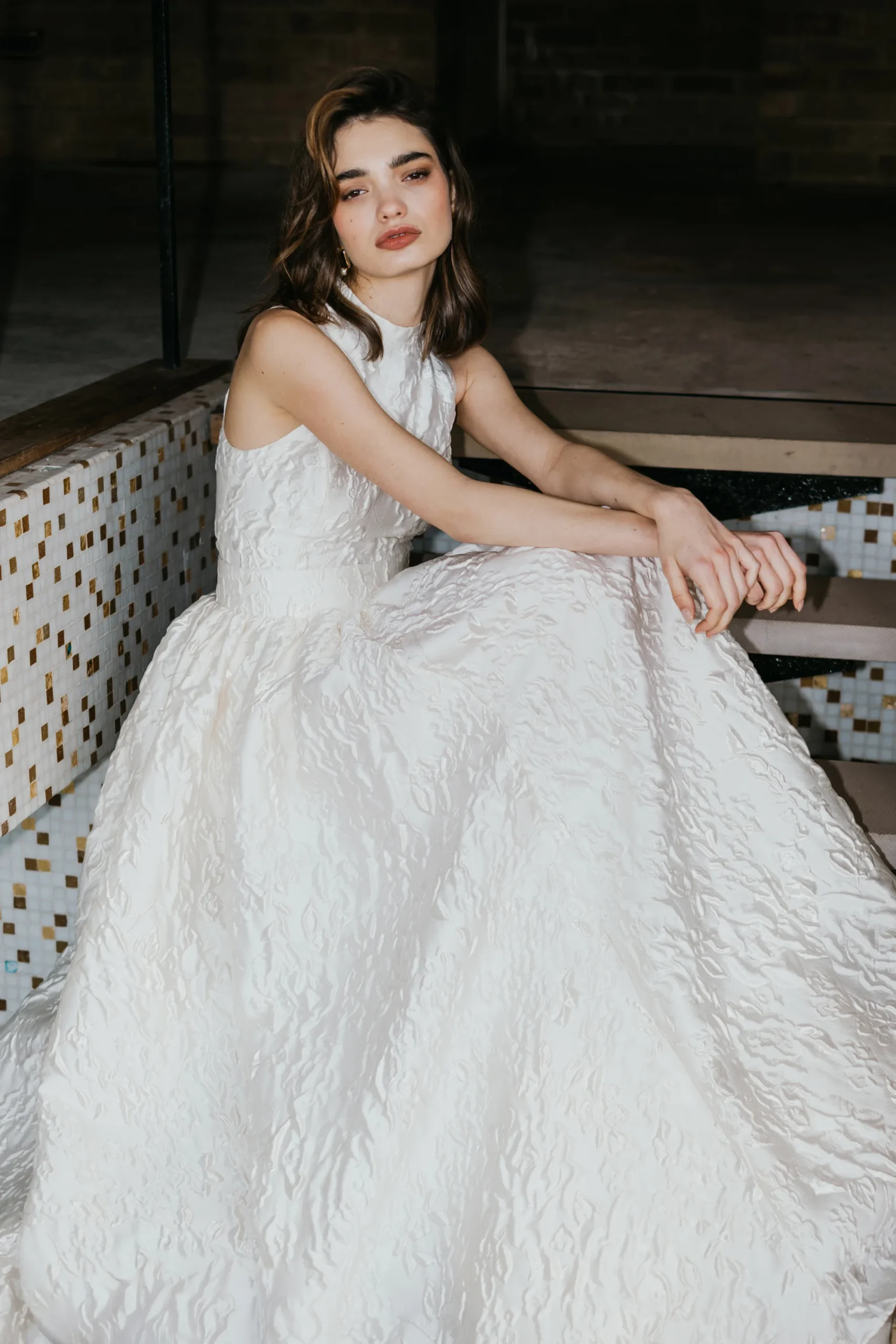 From a design perspective, the use of hand-worked embroideries and custom jacquards positions Unbridled Studio as a high-end alternative to more traditional bridal houses. By focusing on how fabrics respond to movement, light, and the female form, Vesty is addressing a gap in the market for bridal wear that is both high-fashion and highly functional.